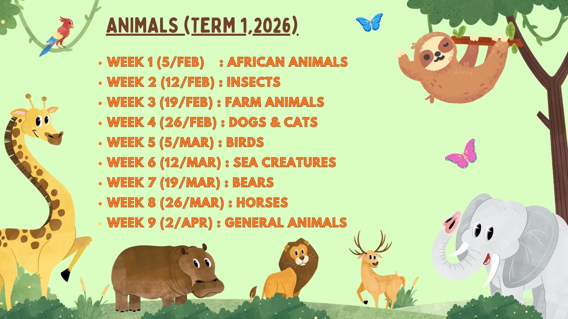 Please bring morning tea and a drink for your children. Morning tea for adults is provided.